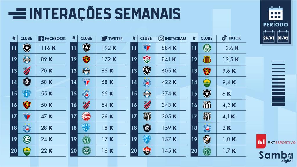 No @VascodaGama, é a segunda semana seguida que o clube figura no TOP 10 do Instagram e, de quebra, também está de volta no Twitter e no Facebook, fato que não acontecia desde a semana de 27/10.