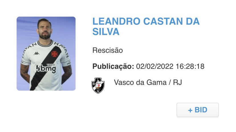 Rescisão de Leandro Castan com o @VascodaGama foi publicada no BID da CBF: