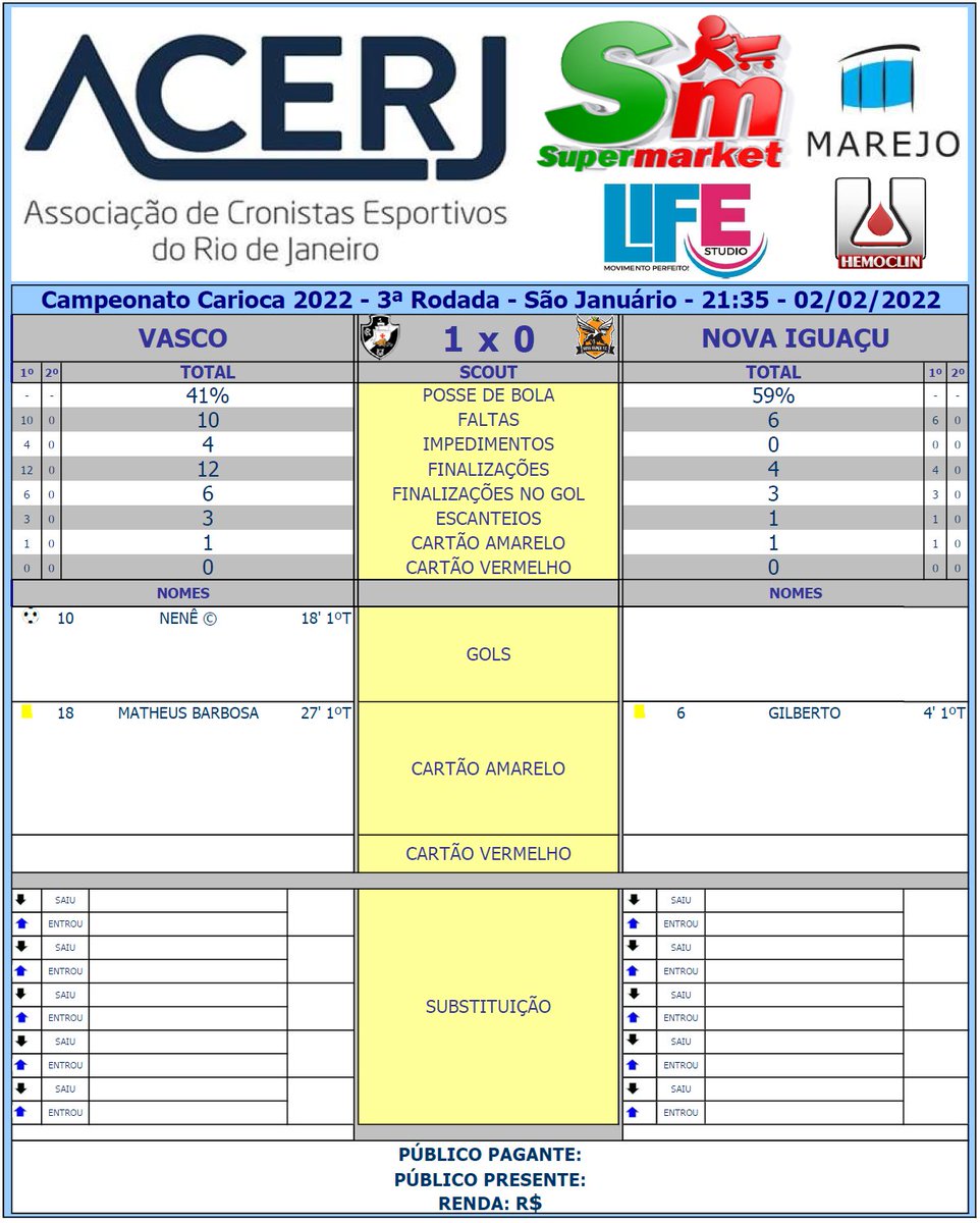 Scout do 1º tempo de Vasco e Nova Iguaçu pela 3ª Rodada do Campeonato Carioca 2022 em São Januário #Acerjinforma #Cariocao2022 #VASxNIG #Vasco #NovaIguaçuFC @Cariocao @VascodaGama @oficialnifc