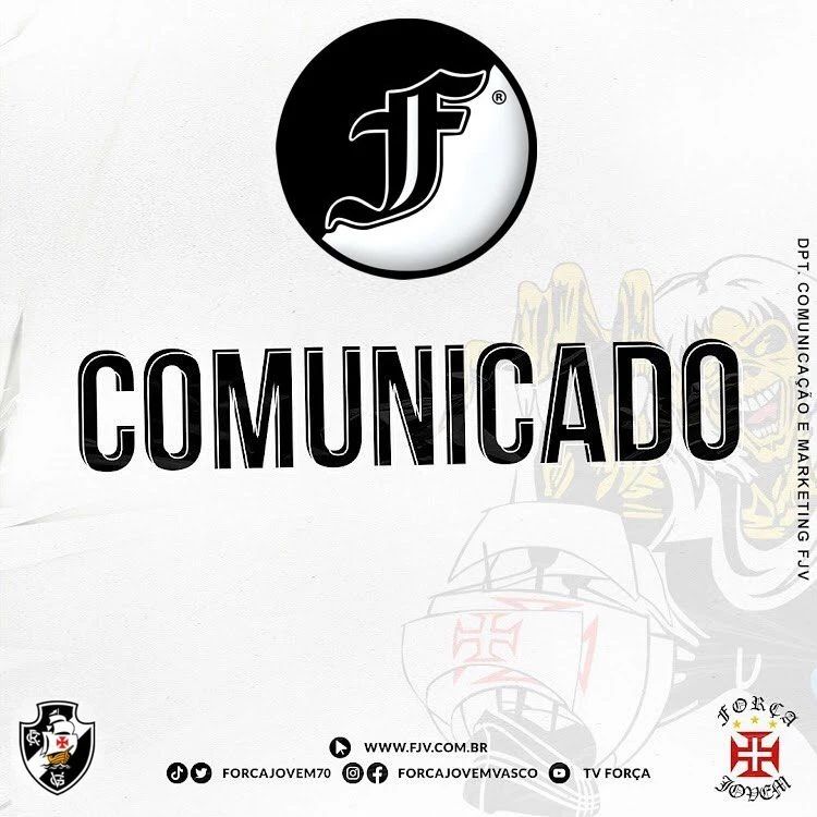 O Grêmio Cultural Torcida Organizada Força Jovem do Vasco vem a público comunicar que, mais uma vez, NÃO se fará presente no jogo do próximo domingo (06/02/2022), entre Madureira x Vasco da Gama, em Conselheiro Galvão, cumprindo o acordo feito com as autoridades públicas.