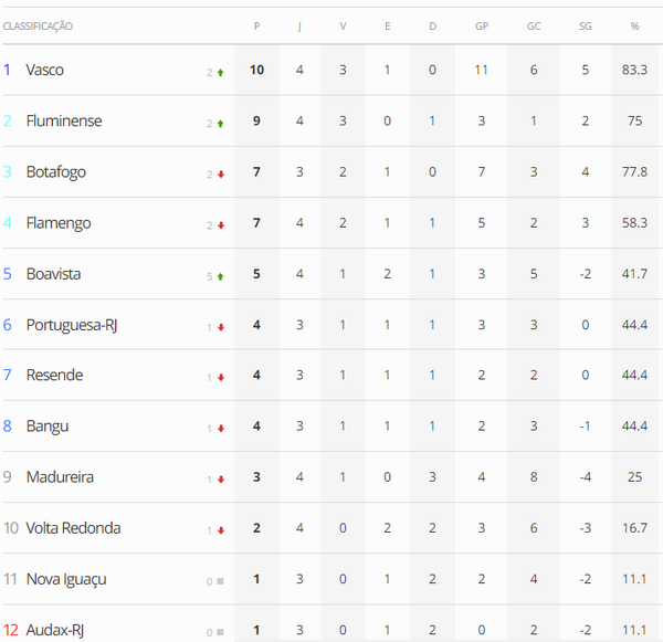 A vitória sobre o Madureira na tarde deste domingo, além da derrota do Flamengo para o Fluminense, fizeram o Vasco dormir na liderança da Taça Guanabara. O Gigante da Colina ainda aguarda o resultado da partida entre Botafogo e Nova Iguaçu para garantir a liderança ao fim da 4ª rodada.