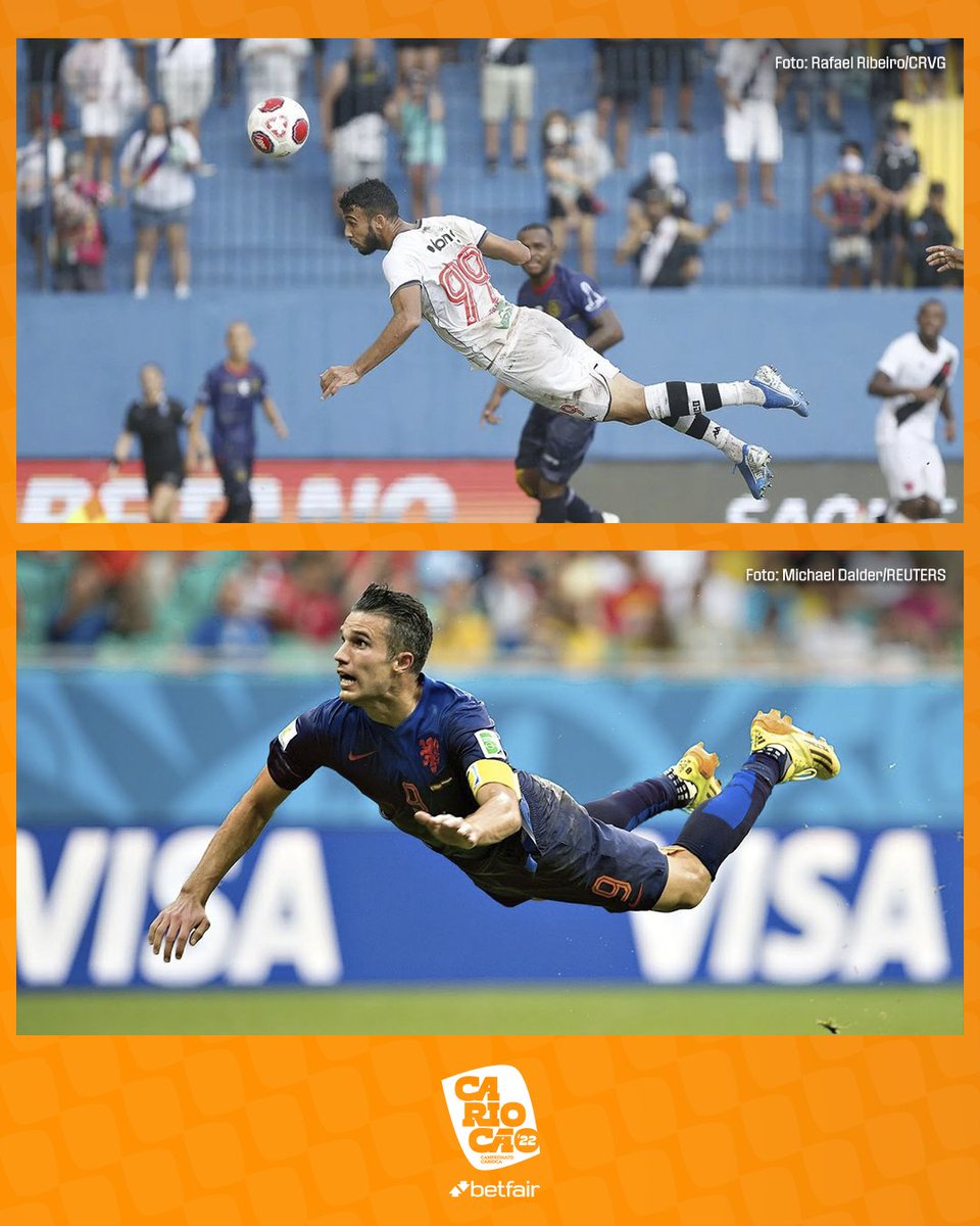 Twitter do Estadual brinca com semelhança entre gols de Getúlio e Van Persie; veja foto