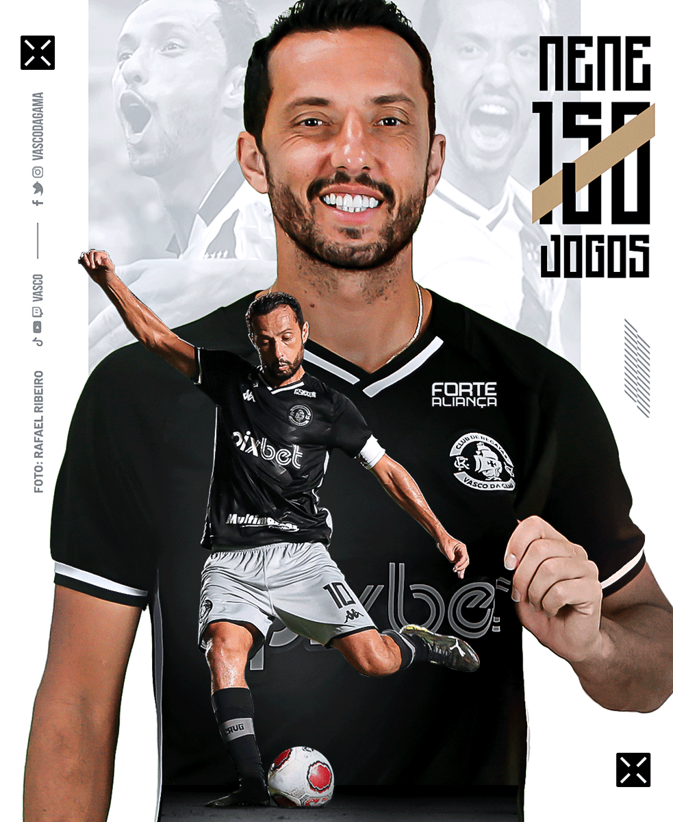 Vasco faz publicação em homenagem a Nenê: 'Completa 150 jogos com a camisa do Vasco na partida de hoje'