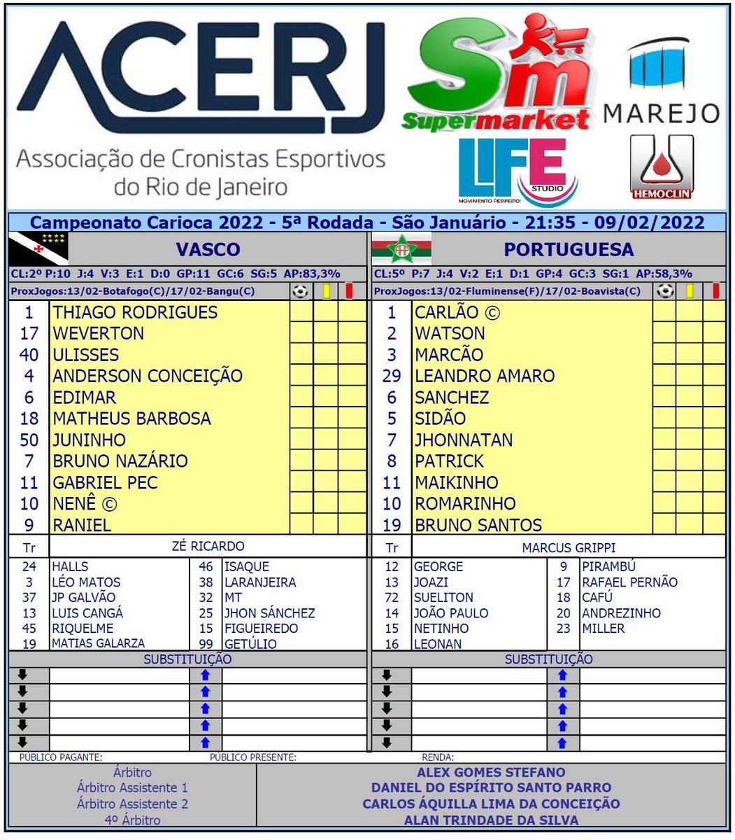 09/02/22 - Confira desfalques e pendurados de Vasco e Portuguesa