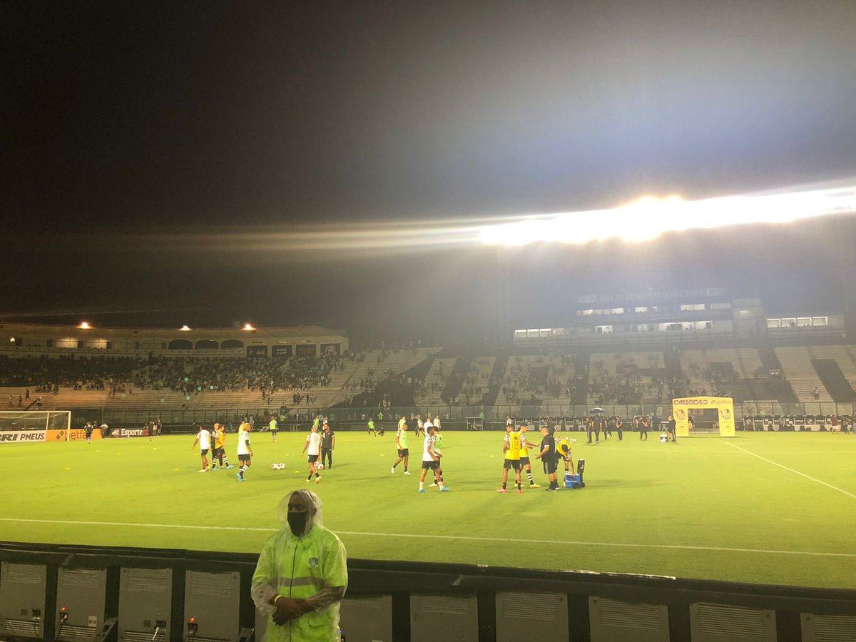 Visão da Social de São Januário. Jogadores vascaínos já no aquecimento.