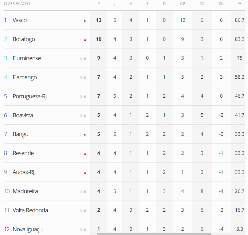 A vitória sobre a Portuguesa recolocou o Vasco na liderança da Taça Guanabara. Porém, a 5ª rodada ainda não acabou; o Botafogo enfrenta o Fluminense nesta 5ª-feira e, se vencer, pode reassumir a 1ª colocação.