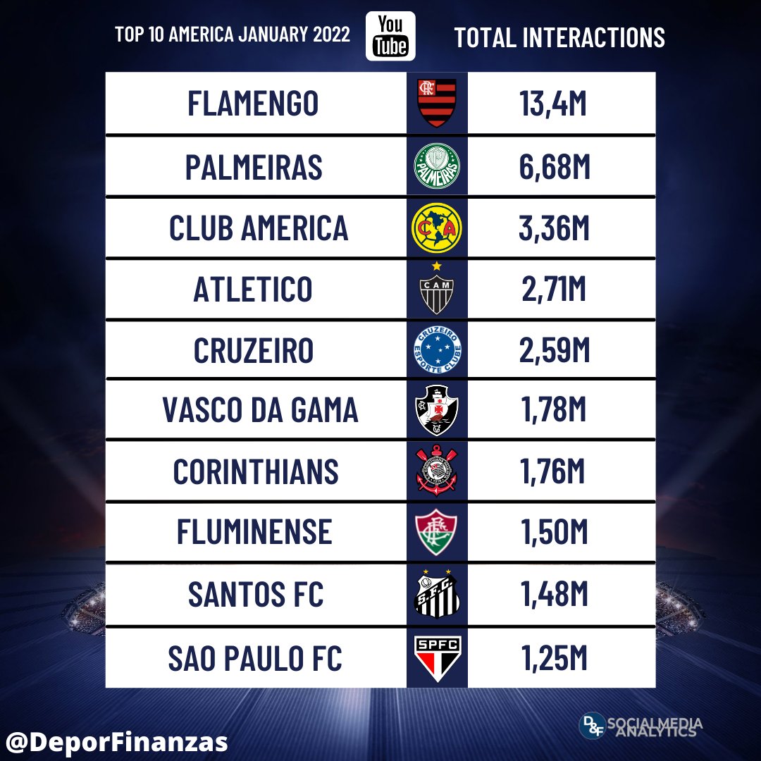 📲⚽ Most popular american football clubs on #youtube during january 22!