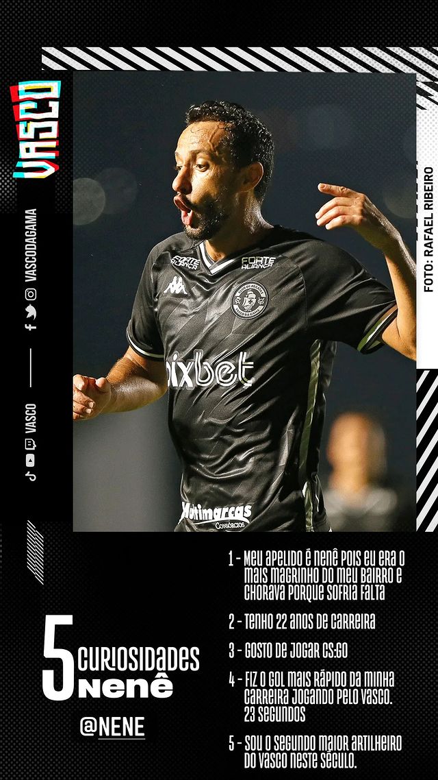 Vasco publica 5 curiosidades sobre Nenê; confira