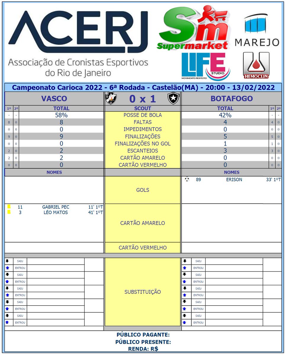 Scout do 1º Tempo de Vasco e Botafogo pela 6ª Rodada do Campeonato Carioca 2022 no Castelão (MA) #Acerjinforma #Cariocao2022 #VASxBOT #Vasco #Botafogo @Cariocao @VascodaGama @Botafogo