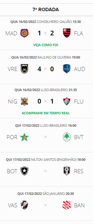 Fonte: NETVASCO (texto), ge (classificação, resultados)