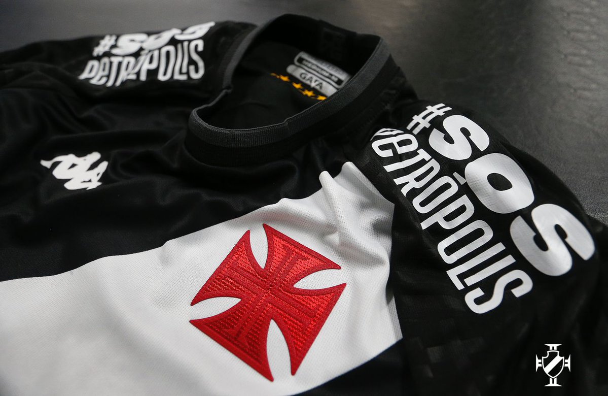Veja fotos da camisa do Vasco para o jogo contra o Bangu com mensagem #SOSPetrópolis