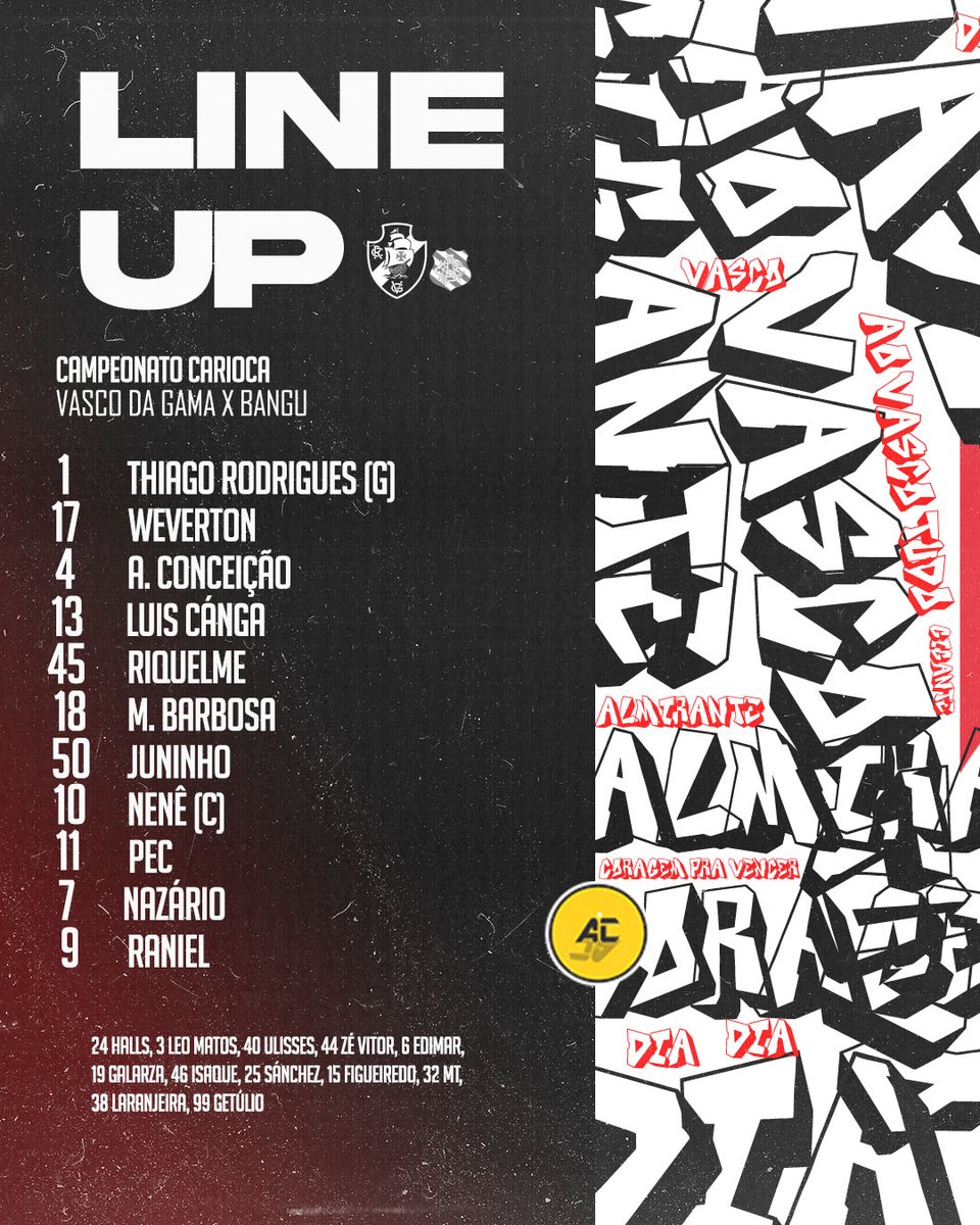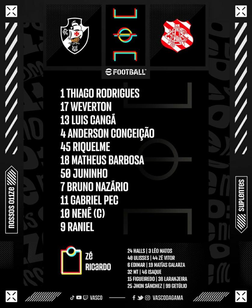 #Vasco escalado para enfrentar o Bangu! 📋☑️