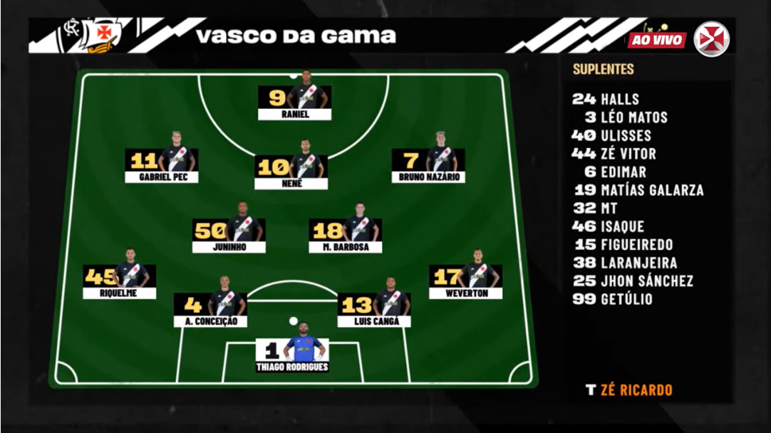 19:31 - Confira a escalação do Vasco para o jogo contra o Bangu; Luis Cangá e Riquelme são as novidades