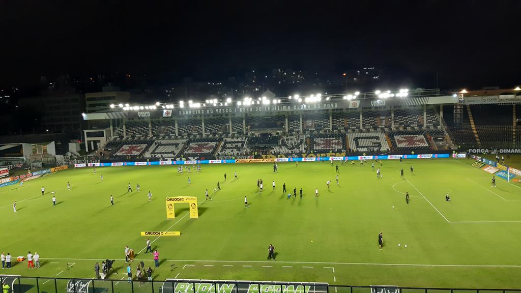 Jogadores de Vasco e Bangu se aquecem no gramado de São Januário; veja foto