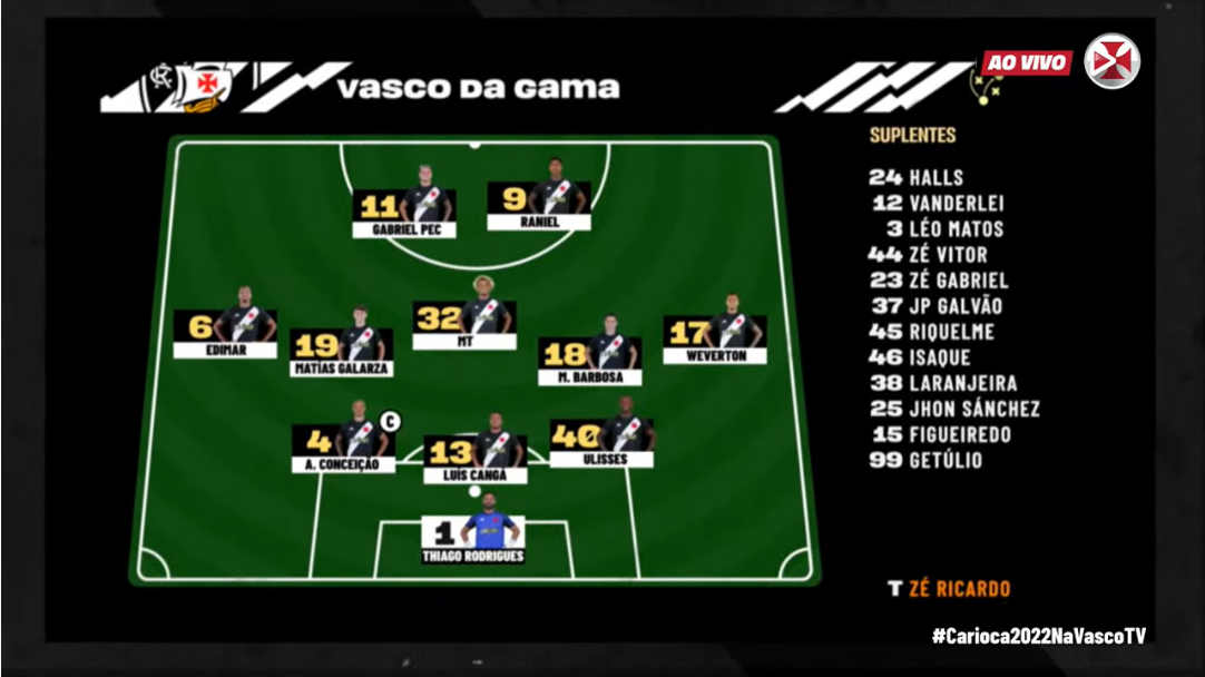 17:29 - Confira a escalação do Vasco para o jogo contra o Audax; Zé Ricardo usa formação com 3 zagueiros