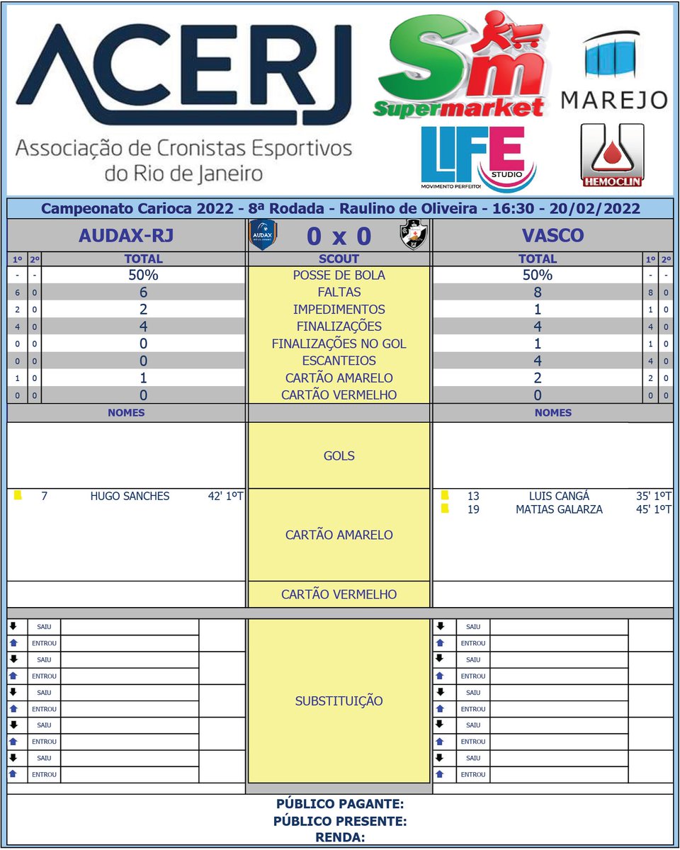 Scout do 1º Tempo de Audax-RJ e Vasco pela 8ª Rodada do Campeonato Carioca 2022 no Raulino de Oliveira #Acerjinforma #Cariocao2022 #AUDxVAS #VascodaGama #angra_audax @VascodaGama @angra_audax @Cariocao