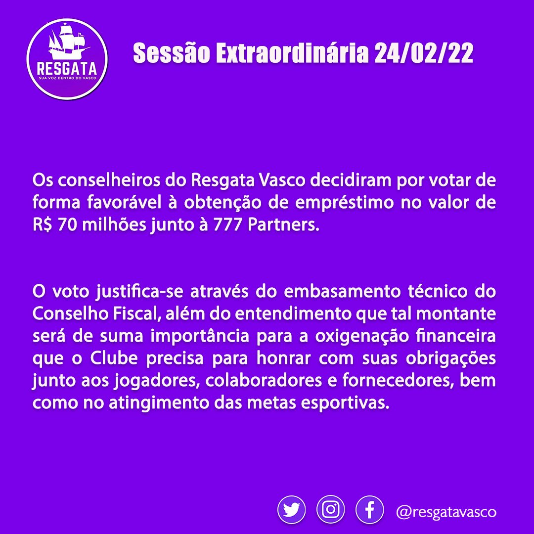 Os conselheiros do Grupo Ao Vasco Tudo, orgulhosamente, votaram favoravelmente à obtenção do empréstimo que viabiliza a vida financeira do Vasco em 2022 e abre caminhos para aprovação da SAF.