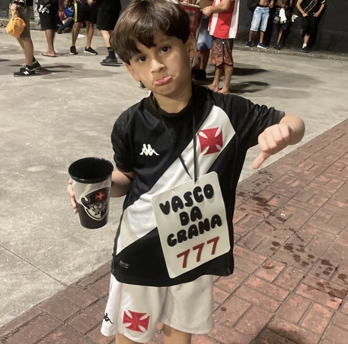 Apesar da derrota, a 777 já faz a cabeça até da molecada. Se liga só no traje do Miguel. 🎰👦🏻