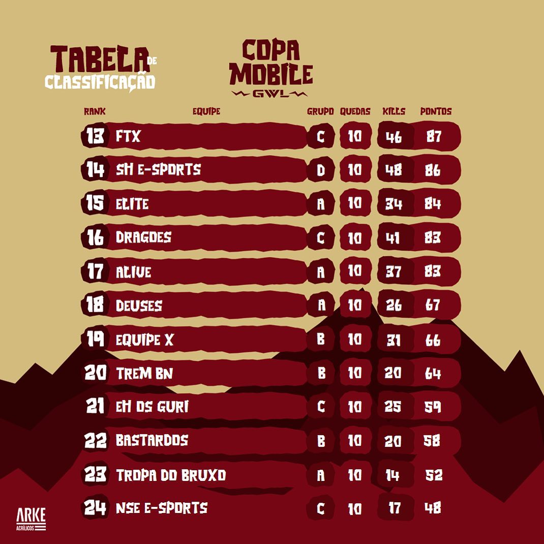Já começamos muito bem a nossa segunda semana de Copa Mobile GWL pessoal, essa tabela está pegando fogo! 🔥