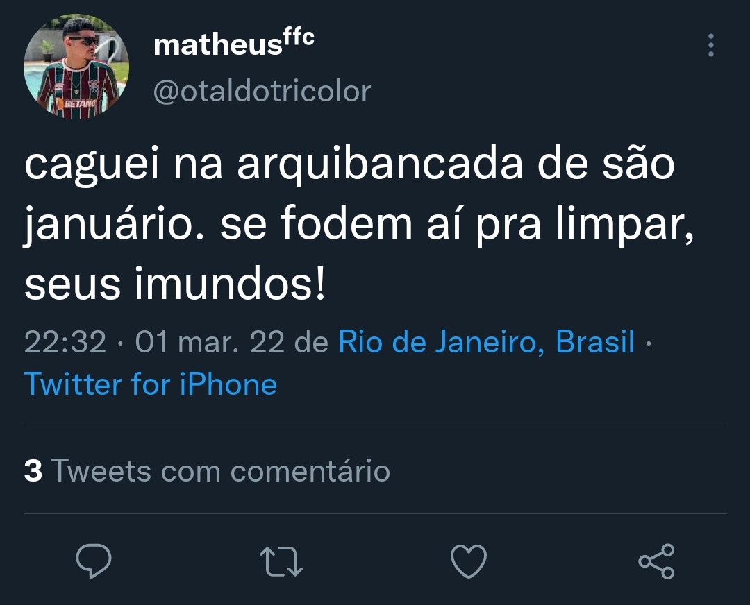 Tricolor afirma ter defecado na arquibancada de São Januário, apaga tweet e depois diz que nem foi ao jogo