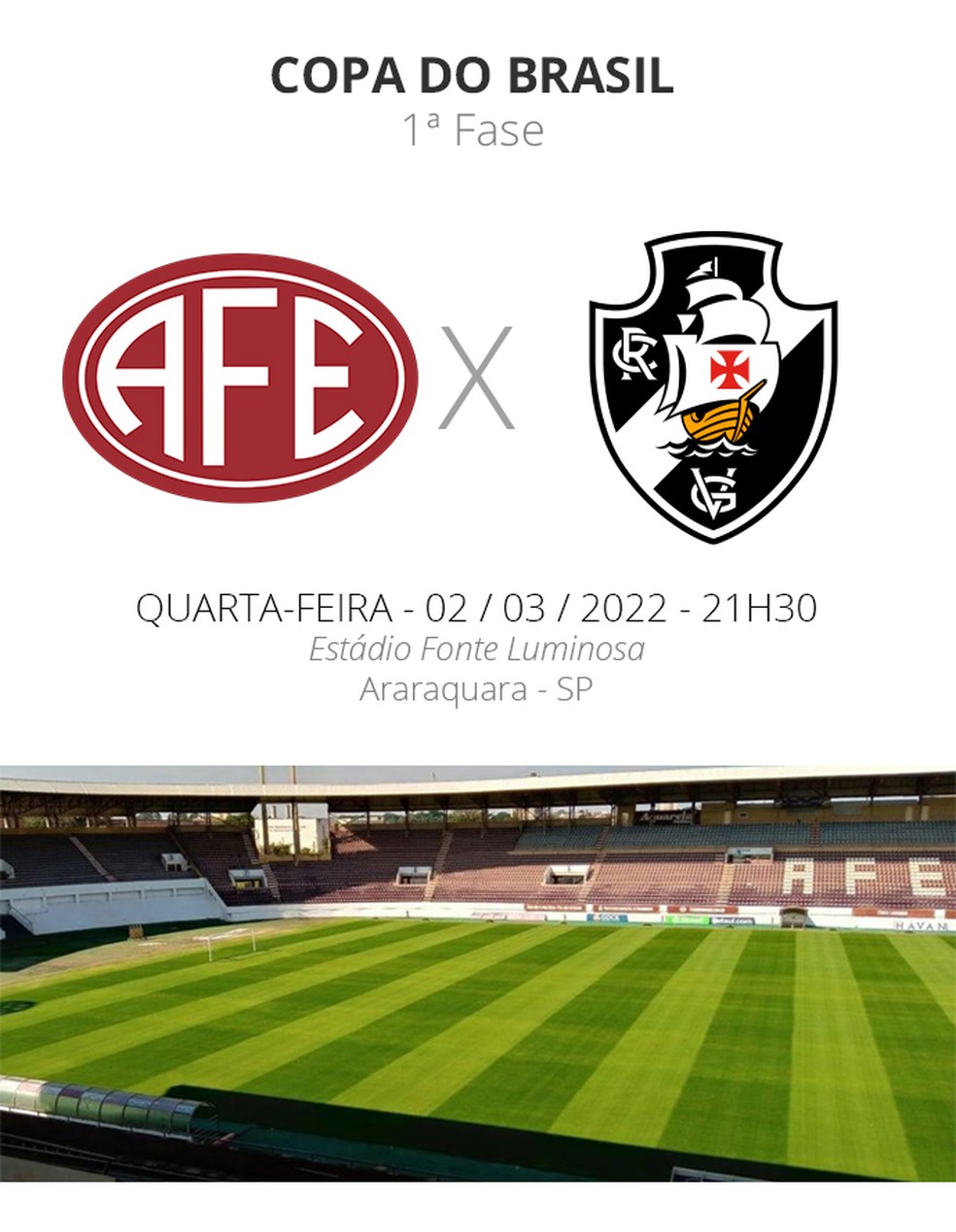 Ferroviária-SP e Vasco se enfrentam nesta quarta-feira, às 21h30, no Estádio Fonte Luminosa. Será a estreia dos clubes e a despedida de um deles da Copa do Brasil de 2022. É jogo único e eliminatório pela primeira fase da competição. O time carioca tem a vantagem do empate.
