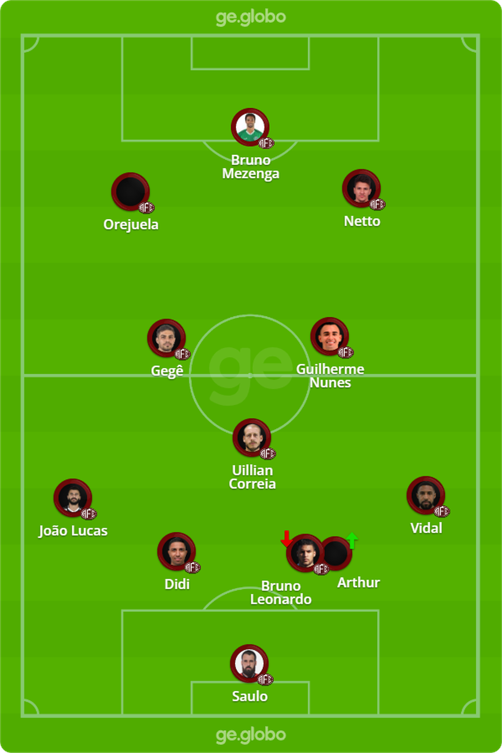 Quem está fora: Vitinho, Yuri Lara e Sarrafiore (se recuperam de lesões); Léo Matos (suspenso)
