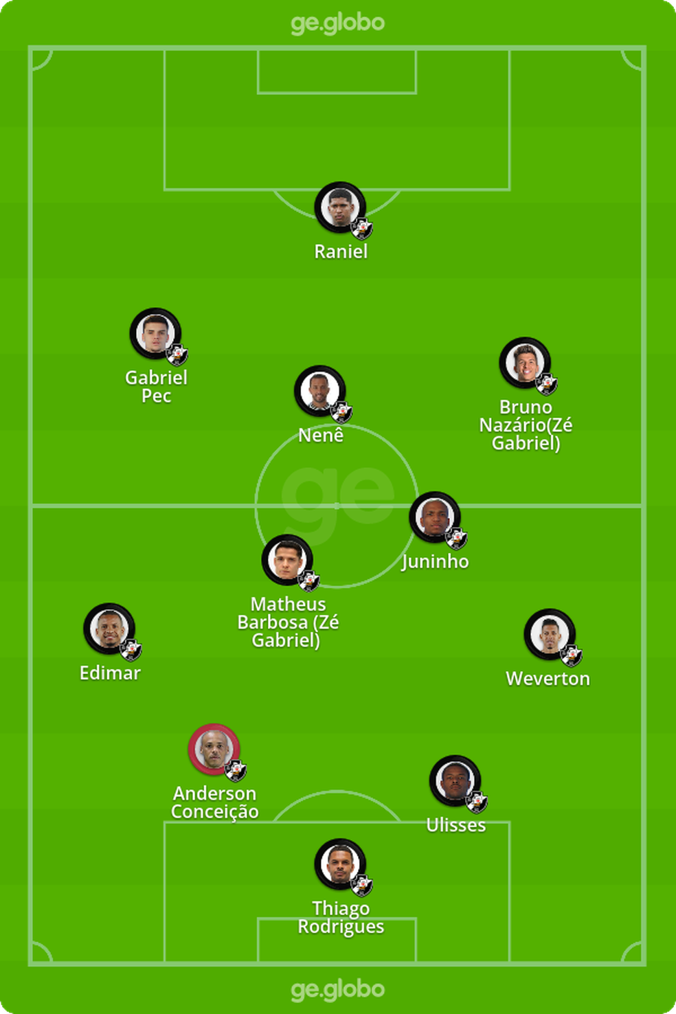Provável escalação: Thiago Rodrigues, Weverton, Ulisses, Anderson Conceição, Edimar (Riquelme); Matheus Barbosa (Zé Gabriel), Juninho, Nenê, Bruno Nazário (Zé Gabriel); Pec e Raniel.