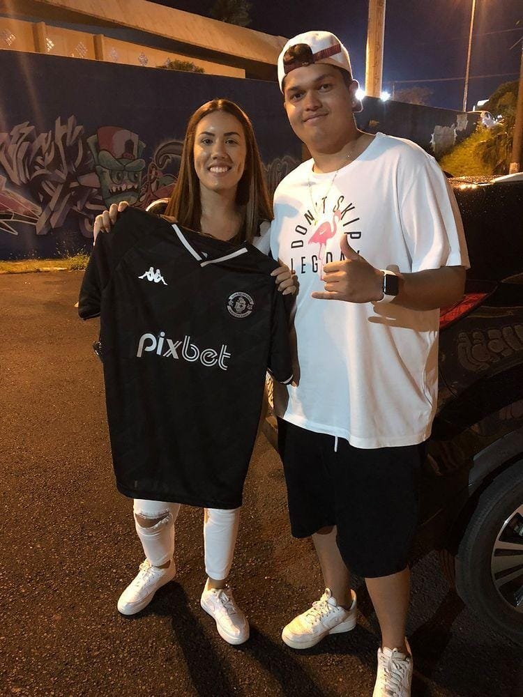Filho de Nenê dá camisa do Vasco a torcedora que levou cartaz com pedido ao estádio em Araraquara
