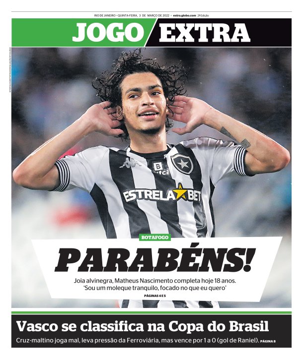 Em sua estreia na Copa do Brasil, o Vasco venceu a Ferroviária em Araraquara (SP) por 1 a 0, gol de Raniel, e se classificou para a 2ª fase da competição. Veja as capas dos jornais.