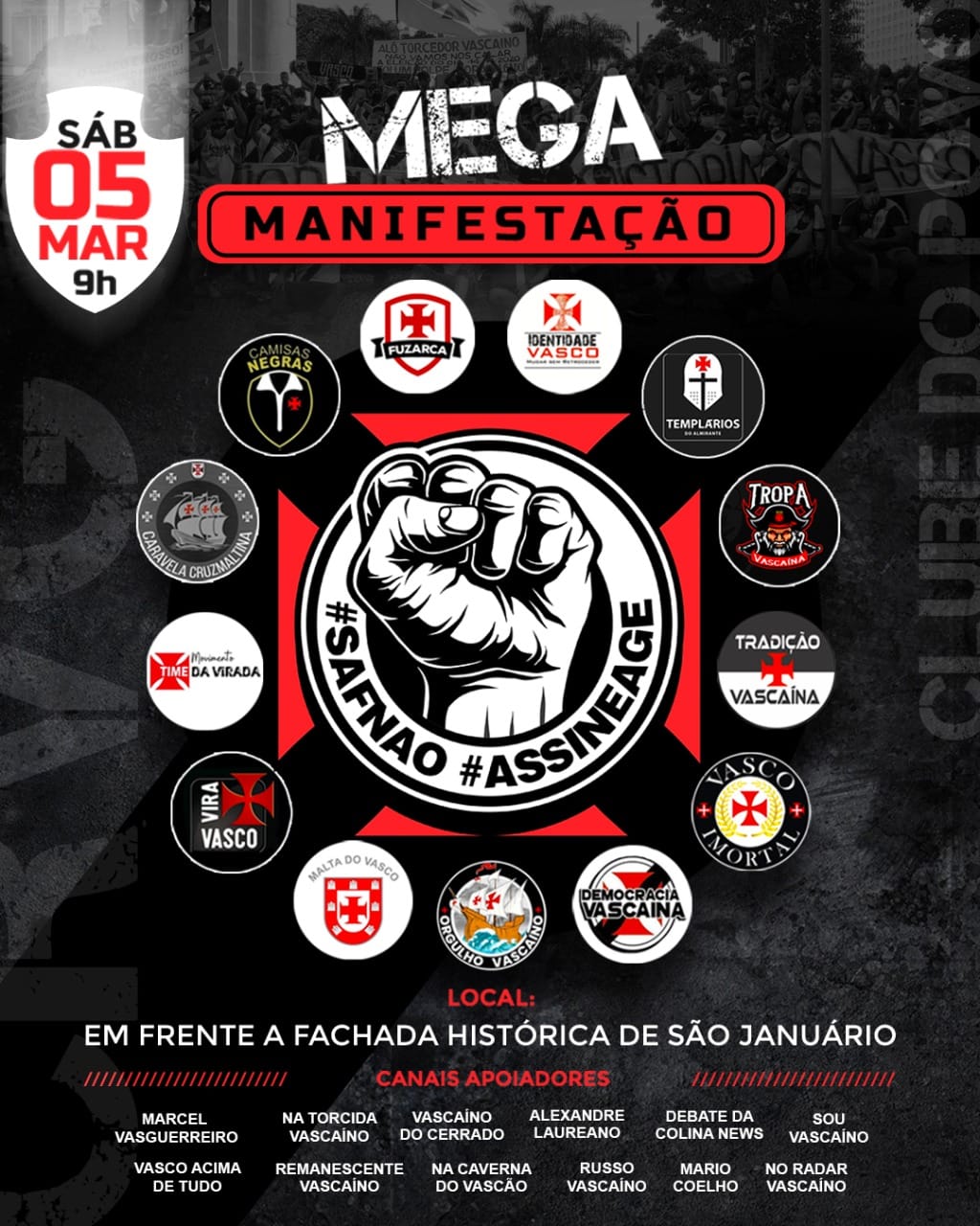 Convidamos todos os torcedores e sócios estatutários que são contra a venda do clube e a favor da AGE para estarem presentes dia 05/03 a partir das 9 horas em frente a São Januário.