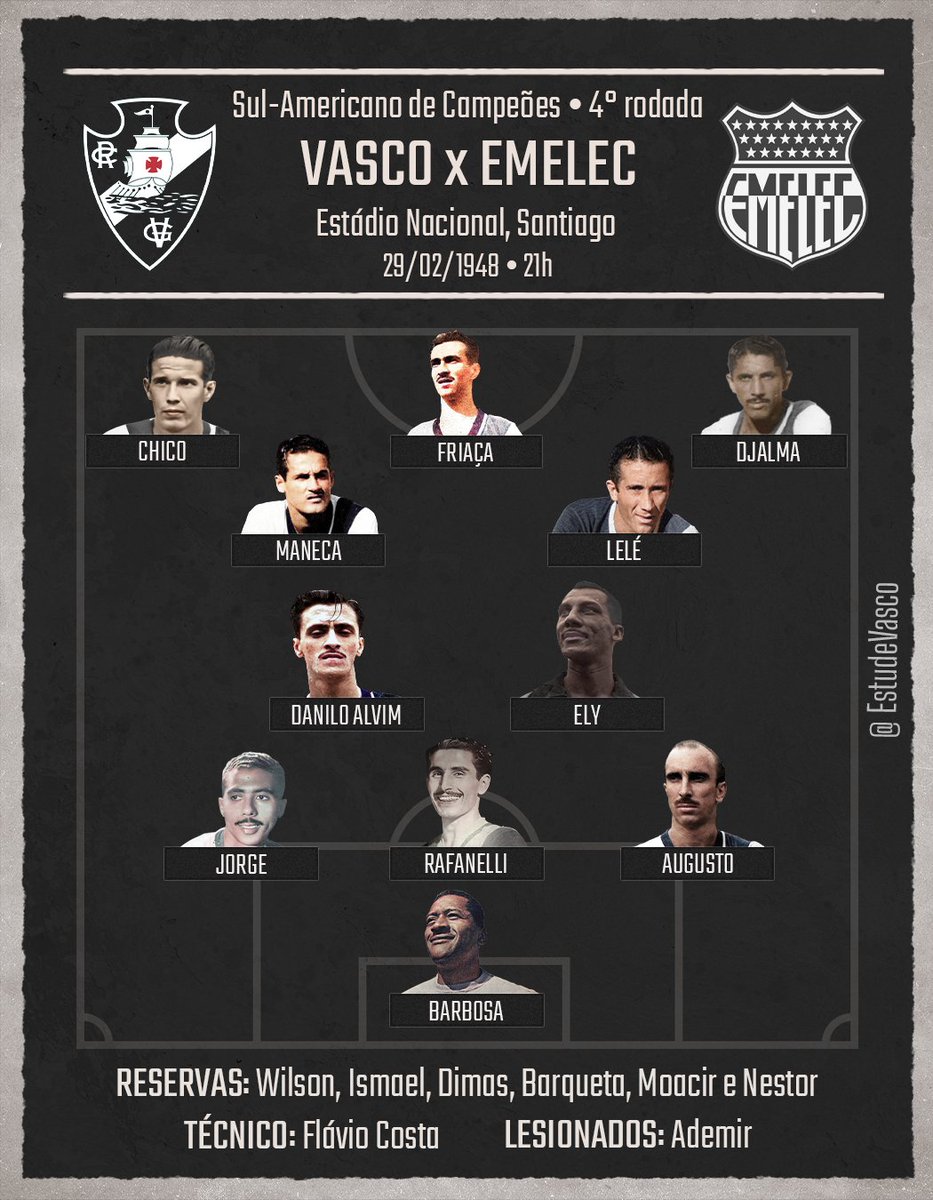 Perfil Estude Vasco fez 'narração em tempo real' de Vasco x Emelec-EQU, pelo Sul-Americano de 1948