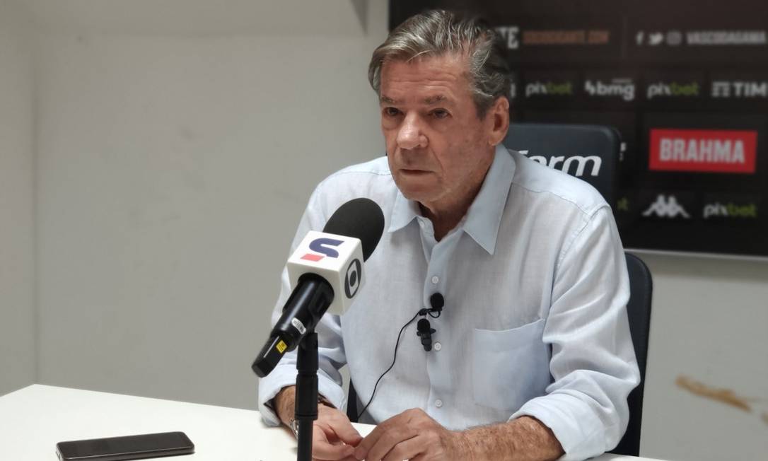 O presidente Jorge Salgado e alguns dos principais vice-presidentes do clube estiveram em São Januário nesta quarta-feira para conversar com a imprensa e tirar dúvidas a respeito do processo da SAF. A diretoria conta com a finalização do processo, o que inclui a formalização de uma oferta vinculante por parte da 777 e mais a aprovação da criação da sociedade anônima e sua posterior venda em até agosto.