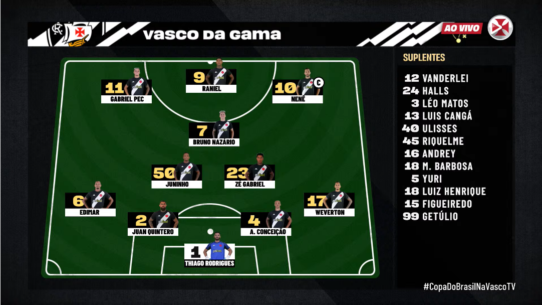 20:31 - Confira a escalação do Vasco; Weverton, Bruno Nazário e Raniel voltam ao time titular