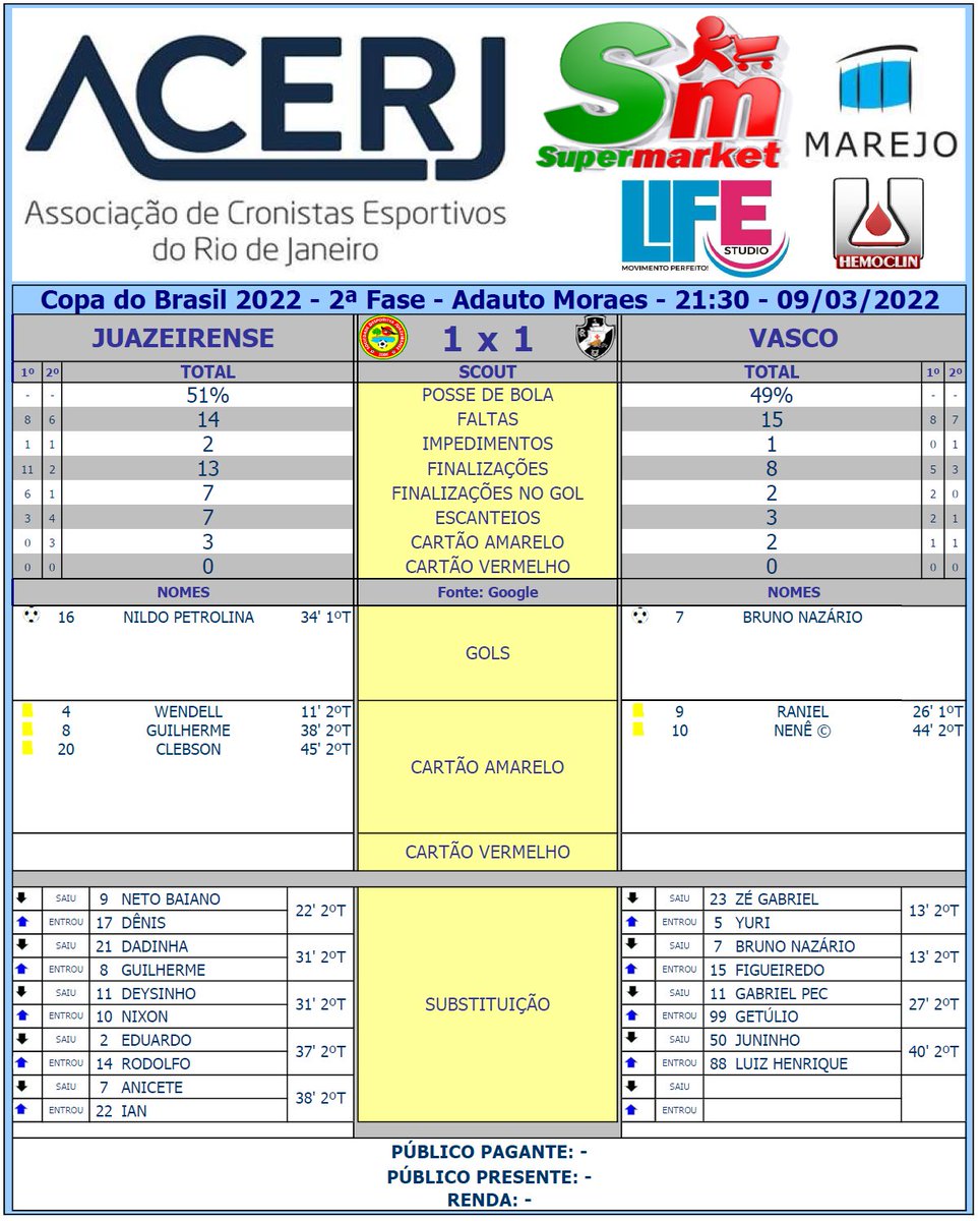 Scout Final de Juazeirense e Vasco pela 2ª Fase da Copa do Brasil 2022 no Estádio Adauto Moraes #Acerjinforma #CopaIntelbrasDoBrasil #JUAxVAS #Juazeirense #VascoDaGama @CopadoBrasil @Juazeirenseba @VascodaGama