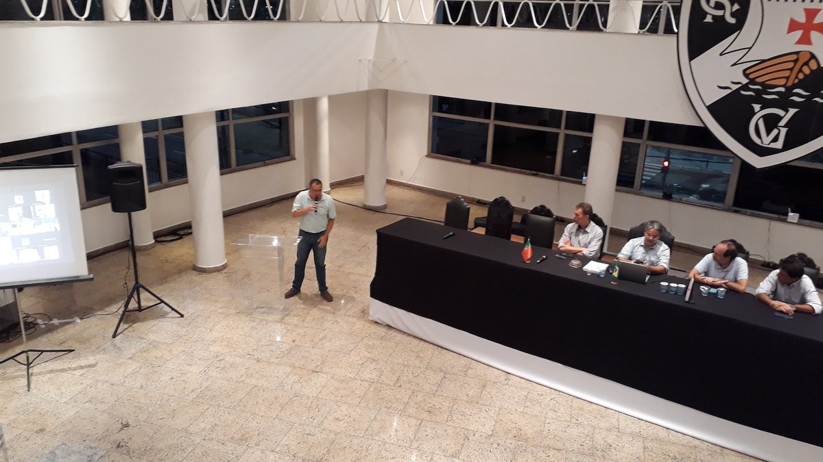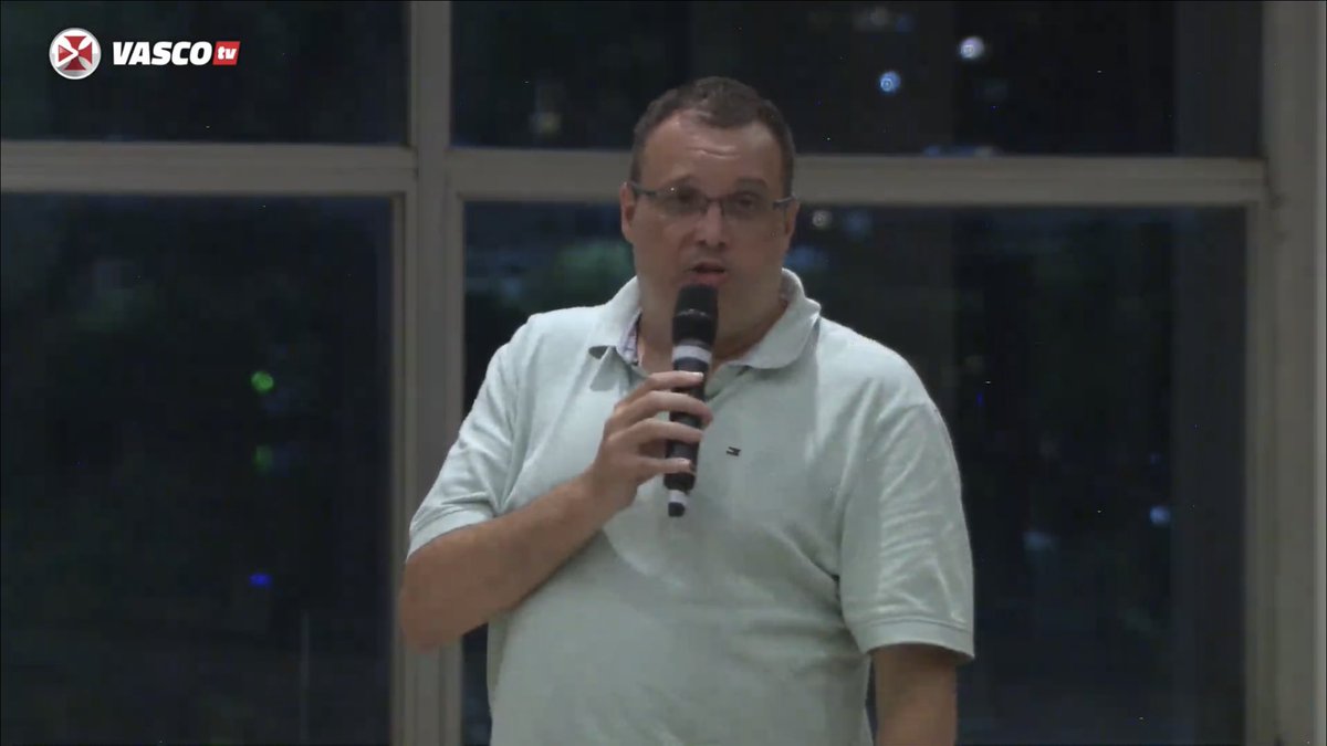 O conselheiro Eduardo Cassiano parabeniza o presidente Carlos Fonseca pela abertura, possibilitando que os vascaínos acompanhem todo o trabalho do Conselho ao vivo.