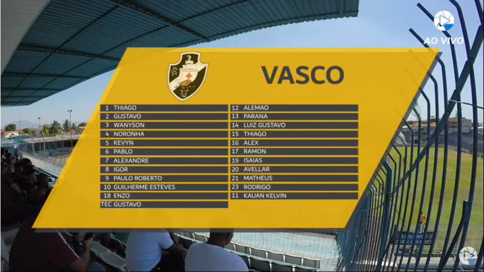 08/03/22 - Juvenil: Intervalo; Vasco vai vencendo o Olaria por 1 a 0