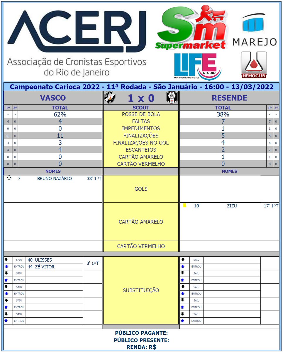 Scout do 1º Tempo de Vasco e Resende pela 11ª Rodada do Campeonato Carioca 2022 em São Januário #Acerjinforma #Cariocao2022 #VASxRES #Vasco #ResendeFC @Cariocao @VascodaGama @Resende_FC