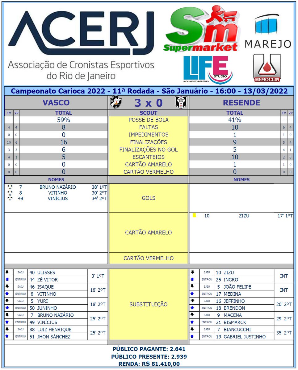 Scout Final de Vasco e Resende pela 11ª Rodada do Campeonato Carioca 2022 em São Januário #Acerjinforma #Cariocao2022 #VASxRES #Vasco #ResendeFC @Cariocao @VascodaGama @Resende_FC