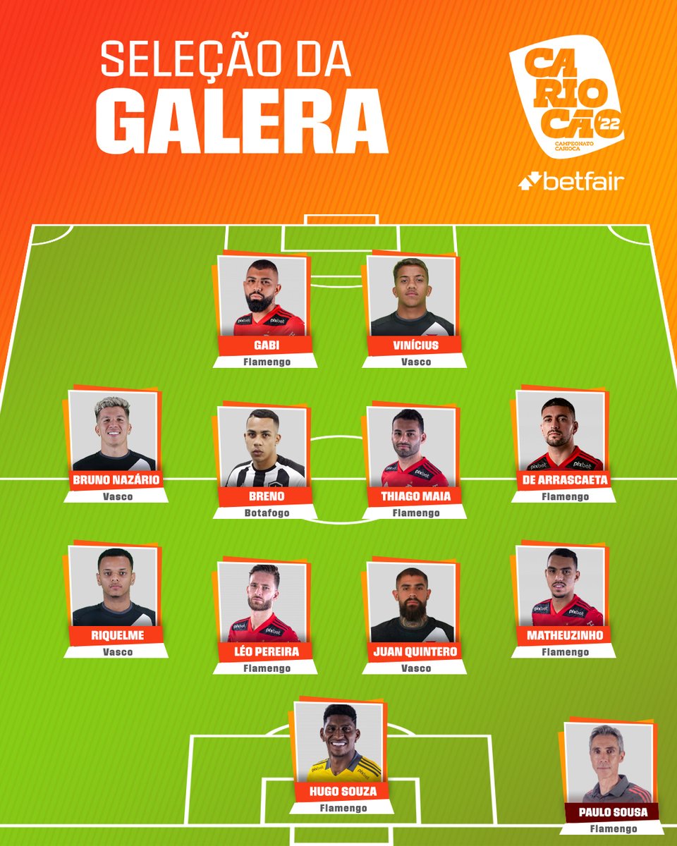 Nossa última #SeleçãodaGalera da Taça Guanabara de 2022 ficou assim! Com domínio de @Flamengo e @VascodaGama, que se encaram na semifinal, e um representante do @Botafogo!