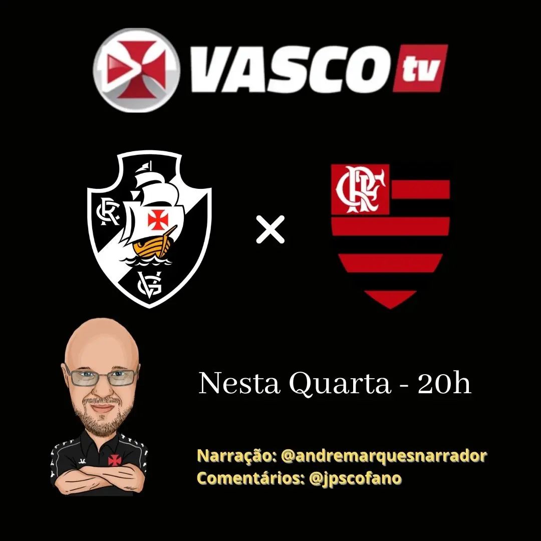 Narro Vasco x Flamengo, nesta quarta! A bola rola 20h! Transmissão com imagem, no Pay Per Vasco, dentro do Cariocão Play. Transmissão em áudio, na Vasco TV, no youtube!