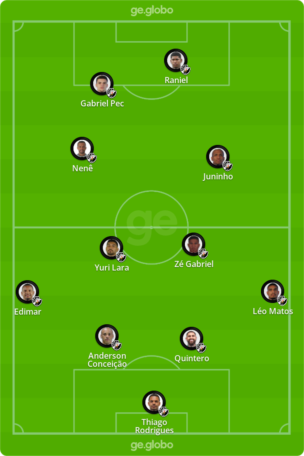 Provável escalação: Thiago Rodrigues, Edimar, Anderson Conceição, Quintero, Léo Matos (Weverton), Yuri Lara, Zé Gabriel, Juninho, Nenê, Gabriel Pec e Raniel.