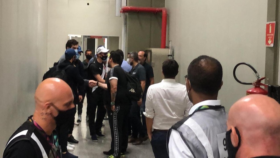Eram sete pessoas na comitiva. Eles foram recepcionados pelo vice-presidente geral do Vasco, Carlos Roberto Osorio, pelo segundo vice-presidente geral, Roberto Duque Estrada, além de um pequeno grupo de torcedores.