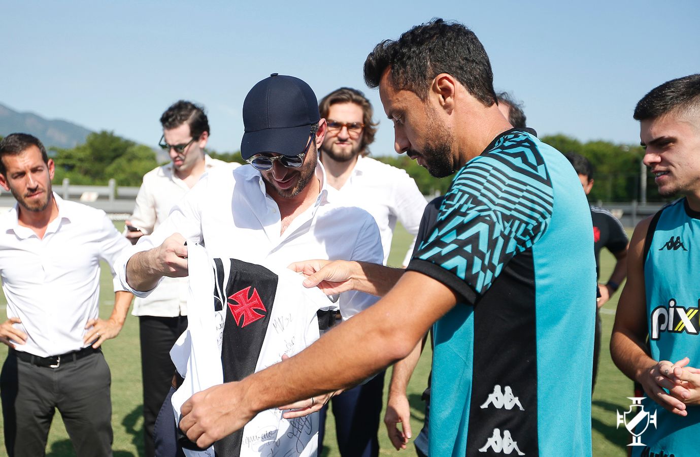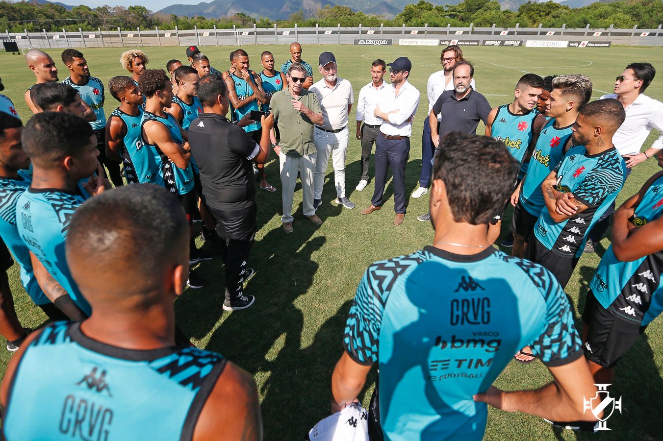 Depois, voltaram ao CT Moacyr Barbosa para um encontro e conversa com jogadores e comissão técnica. Presidente Jorge Salgado apresentou os executivos ao elenco e fez uma explanação sobre a parceria proposta. O camisa 10 do Vasco, Nenê, entregou uma camisa autografada por todo o elenco a Joshua Wander. Em nome da 777 Josh cumprimentou os jogadores e expôs os planos da empresa para o futebol profissional do clube.