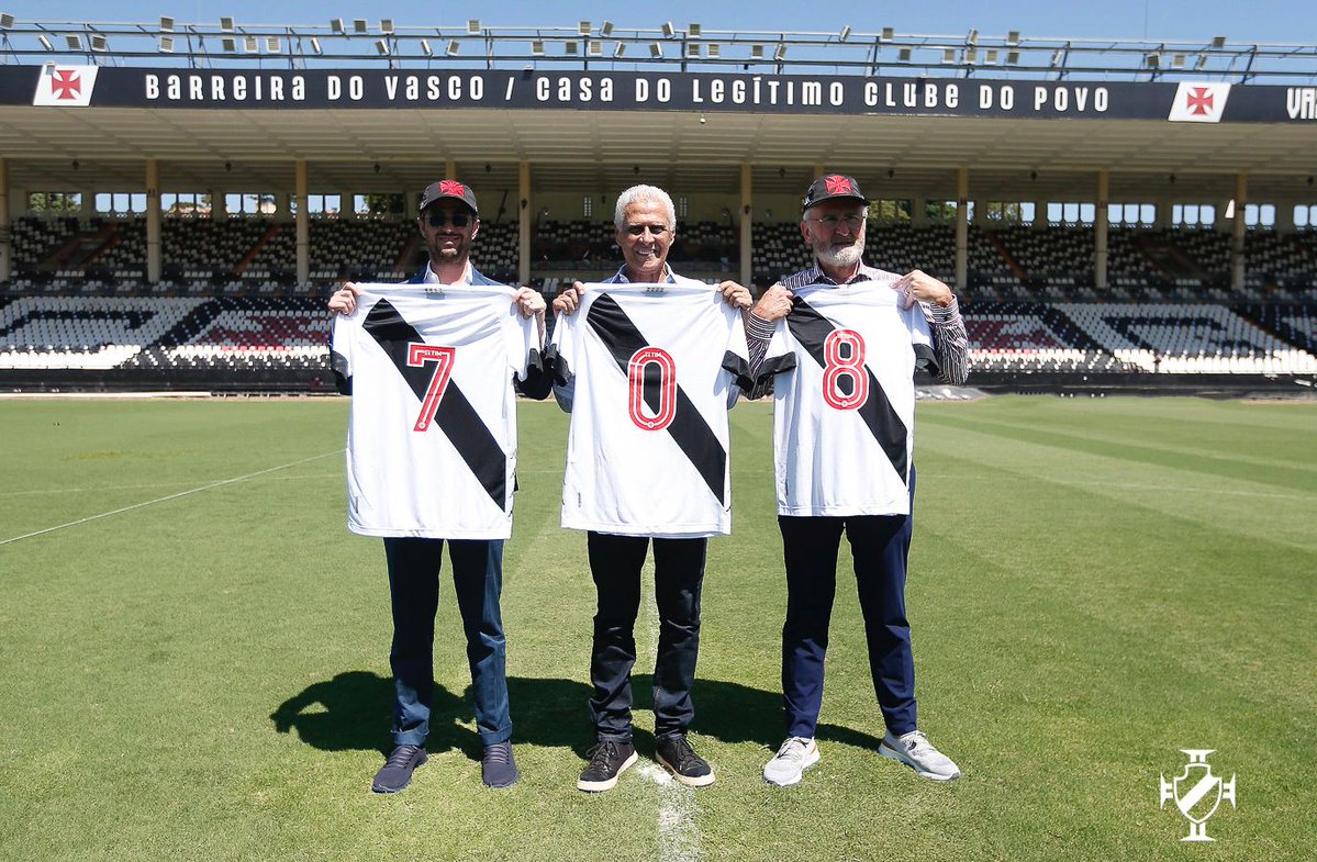 Roberto Dinamite posa para foto em São Januário com executivos da 777 Partners