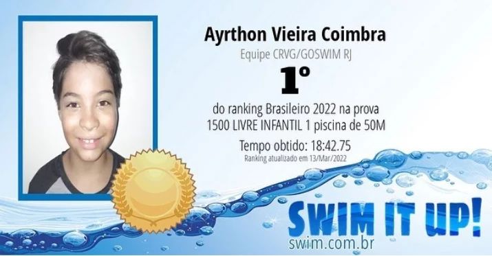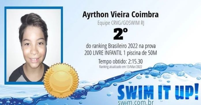 Natação: Ayrthon Coimbra lidera o ranking brasileiro da categoria Infantil I em 2 provas