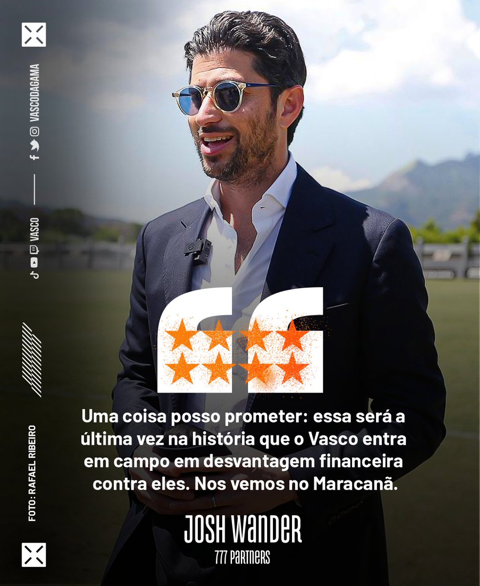 Vasco posta frase de Josh Wander sobre desvantagem financeira e completa: 'Good night'