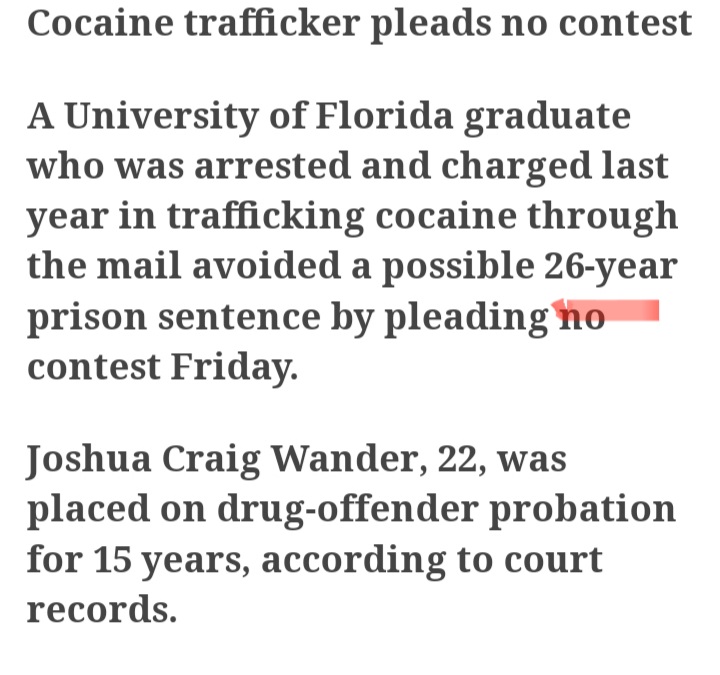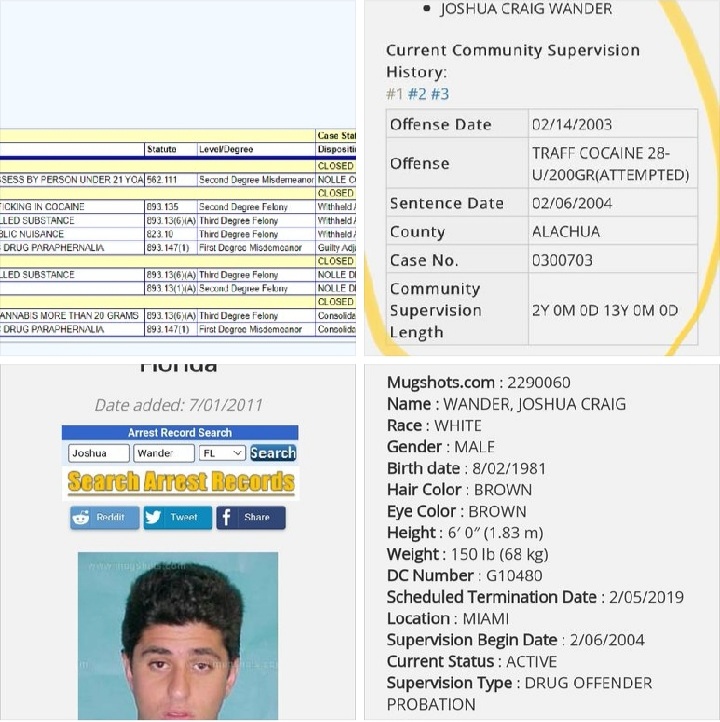 Consta que no ano de 2004 o sr. Joshua foi condenado por tráfico de drogas, conforme evidência a seguir: