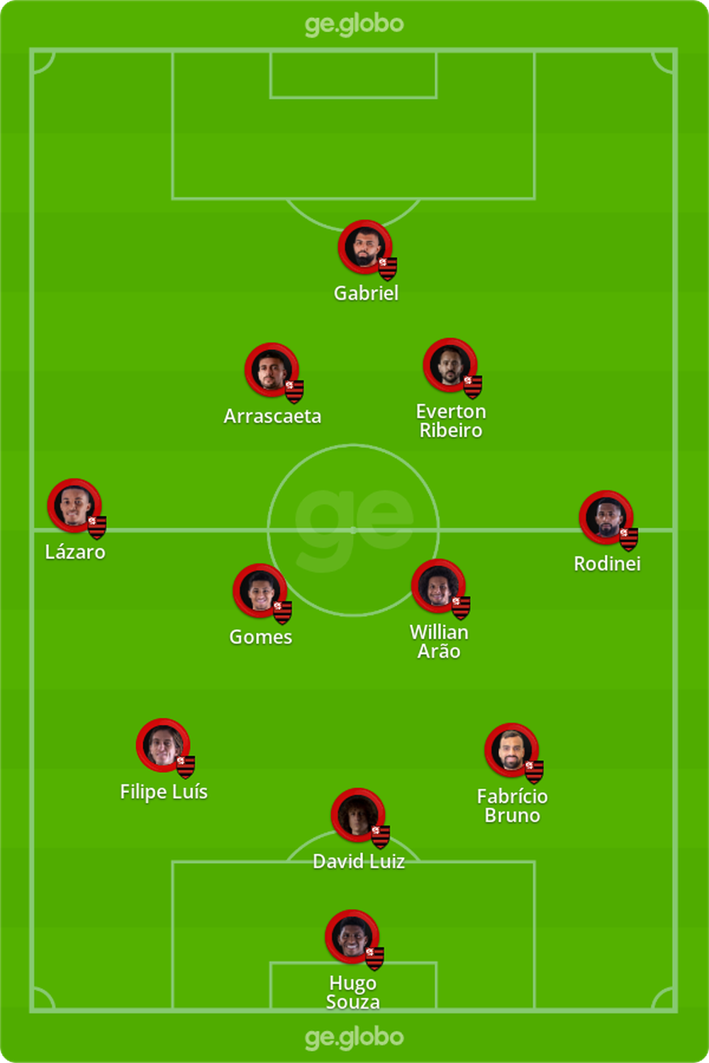 Provável escalação: Hugo, Fabrício Bruno, David Luiz e Filipe Luís; Rodinei (Matheuzinho), Willian Arão, João Gomes (Andreas) e Lázaro; Everton Ribeiro e Arrascaeta; Gabriel.