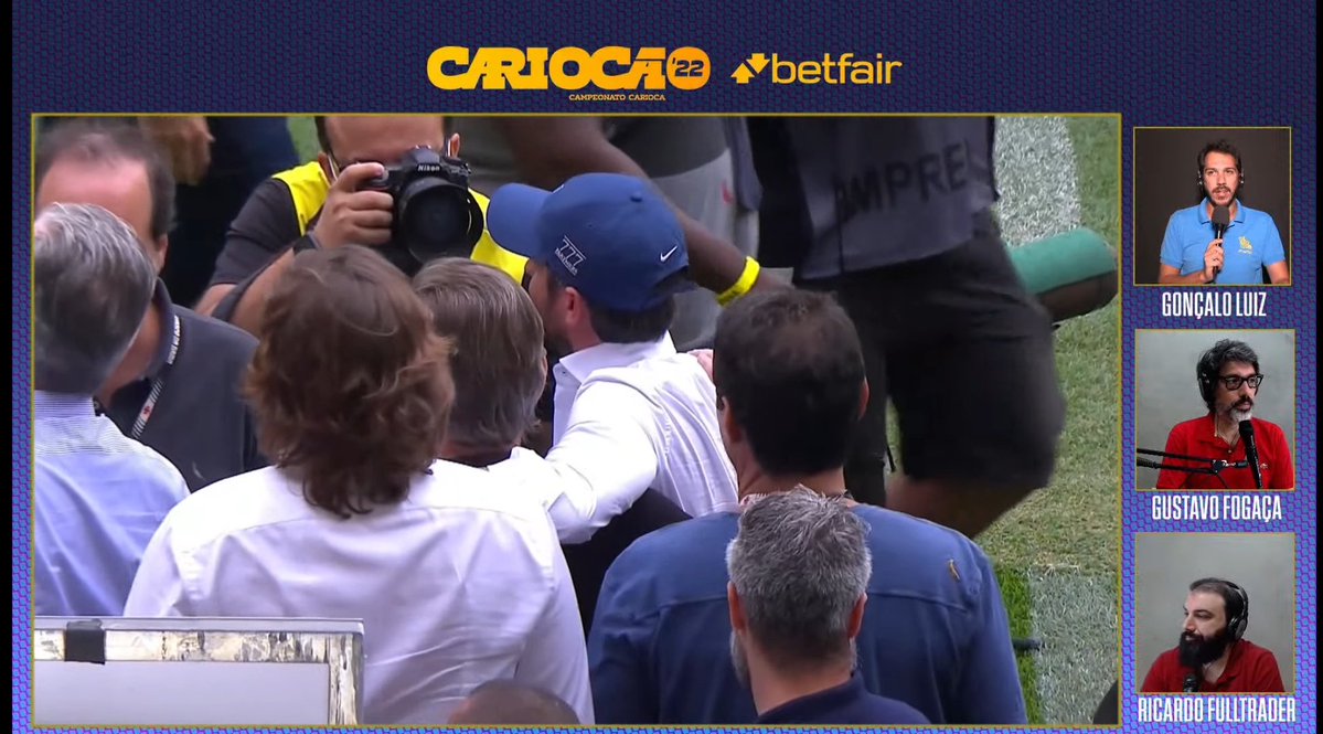 Josh Wander e Steven Pasko estão no Maracanã ao lado do presidente Salgado.