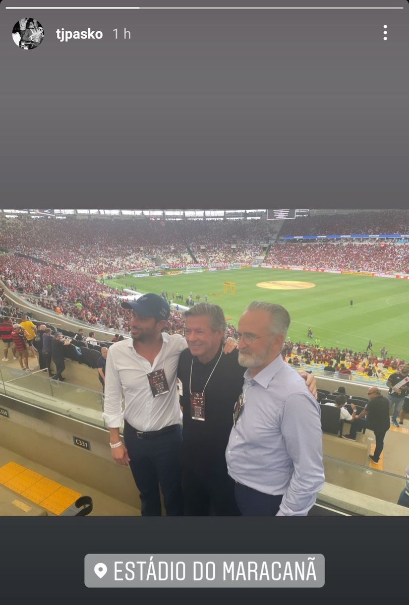 Jorge Salgado posa para foto com Josh Wander e Steven Pasko, da 777, no Maracanã